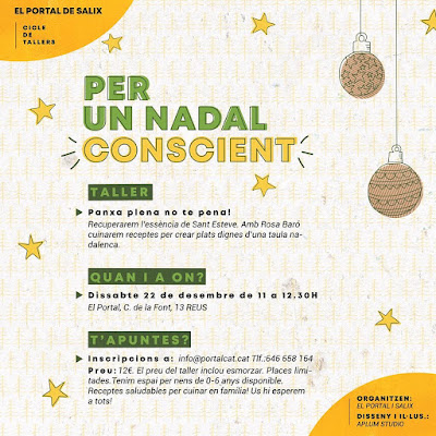 Taller Per un Nadal Conscient, aprendrem receptes saludables per aprofitar aliments i reduir el malbaratament alimentari. Dissabte 22 de desembre