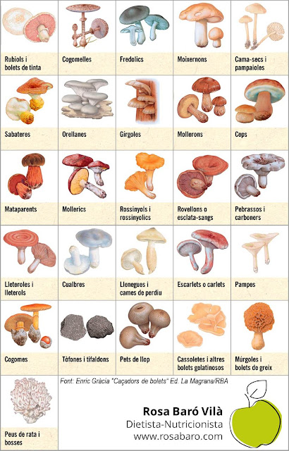 La tardor és temps de bolets! A la següent imatge podem veure els grans grups de bolets comestibles de Catalunya,